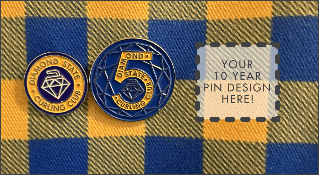 Diamond State Curling Club has been around for almost a decade! That’s right, this March will be our 10 year anniversary and we need your help. If you’ve ever been to a bonspiel, you know it’s tradition around these parts to exchange your club pin with your opponent as a souvenir to remember your time on the ice. After a few bonspiels though, you feel like you’ve already collected them all. I mean, how many Bucks County pins does one person need? So clubs often find excuses to release special commemorative pins to keep the fun going. We’ve finally run out of our 5 year commemorative pins, just in time for our 10 year anniversary. And just like last time, we’re turning to our membership for help. We want our members to come up with the final design!
